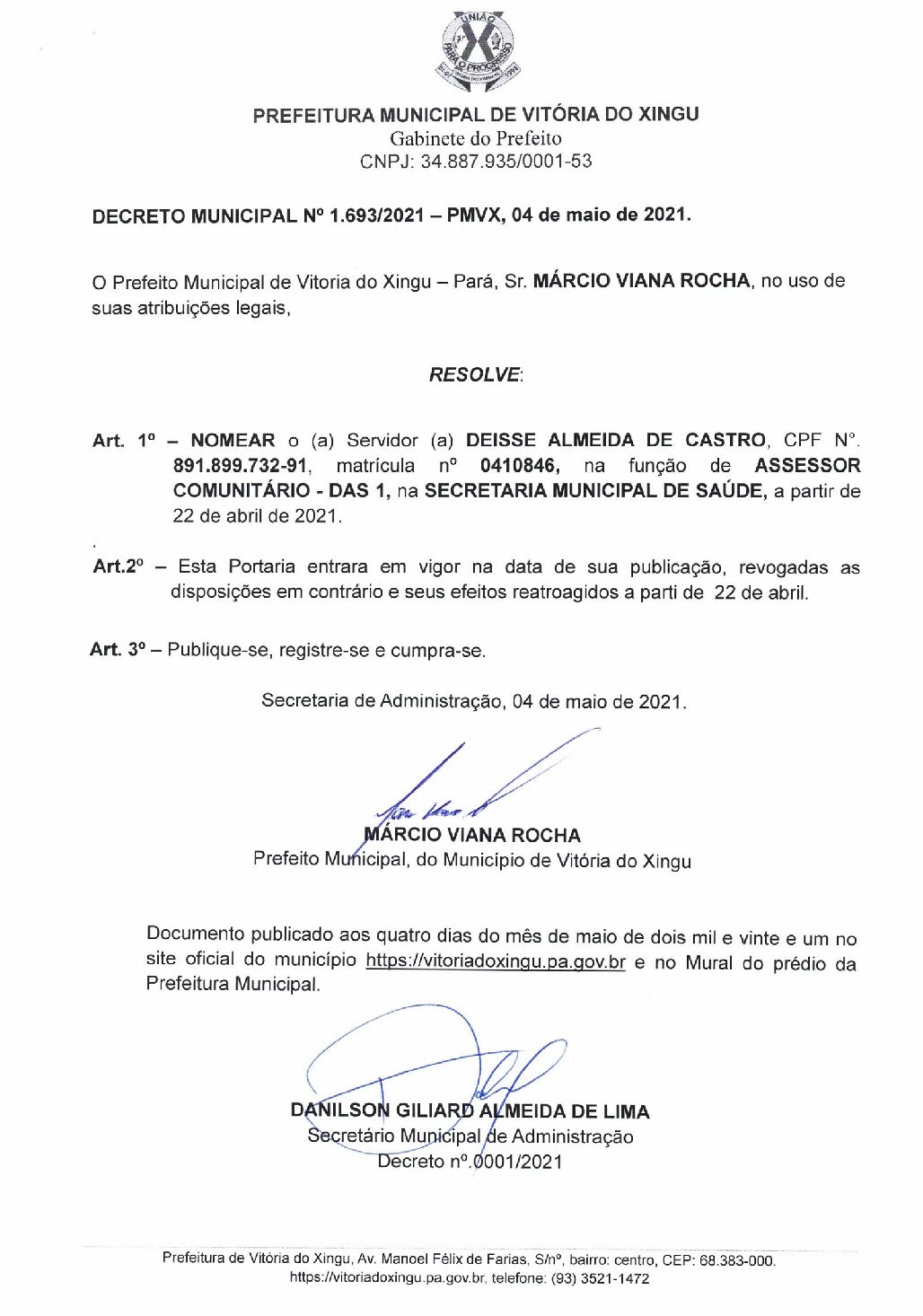 DECRETO Nº1.693-2021 – DEISSE ALMEIDA DE CASTRO