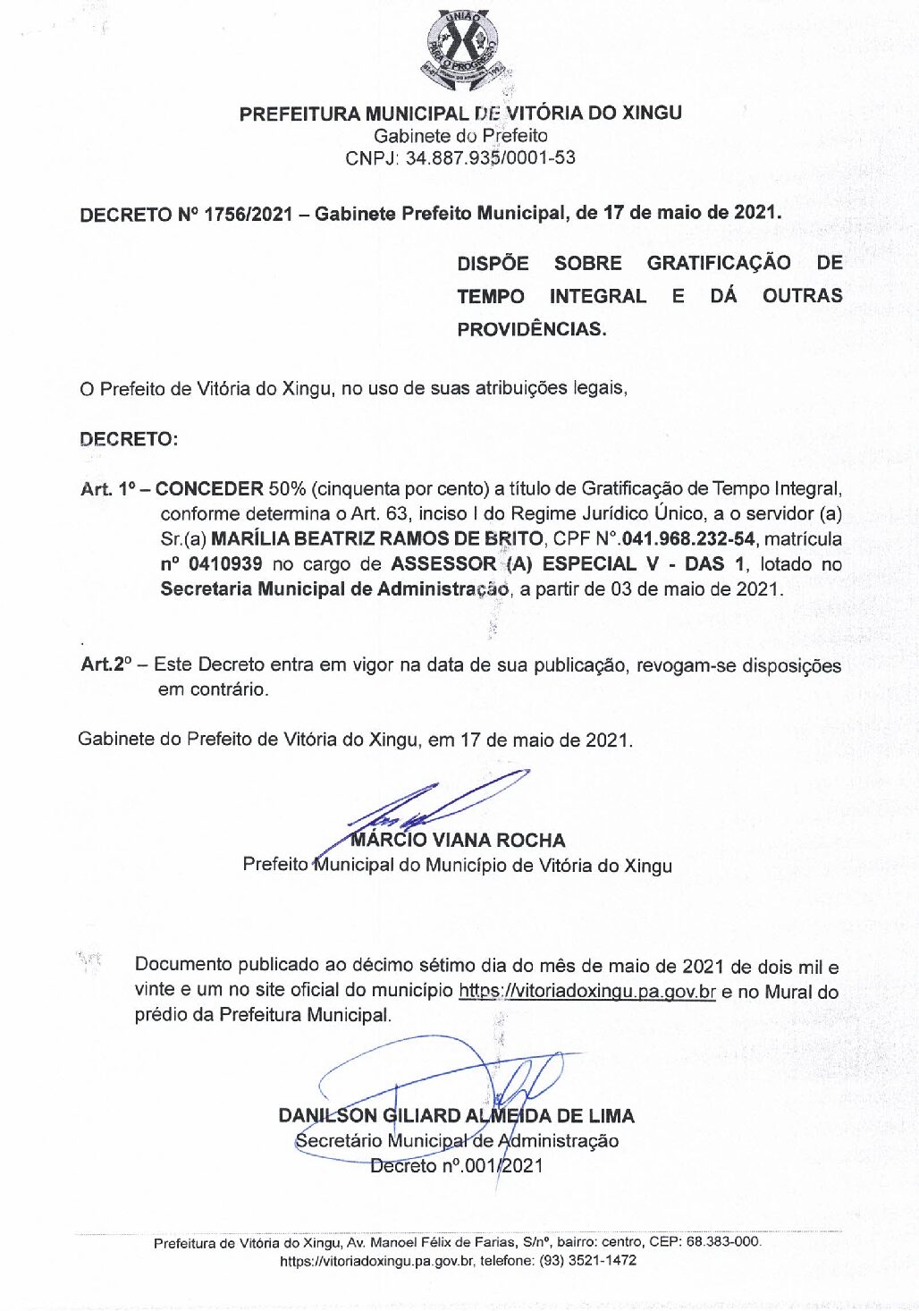 DECRETO Nº1756-2021 – MARILIA BEATRIZ RAMOS DE BRITO