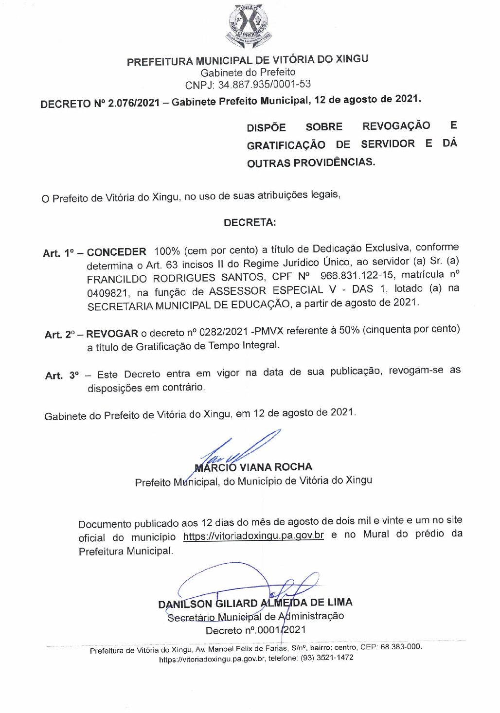 DECRETO Nº2.076-2021 – FRANCILDO RODRIGUES SANTOS