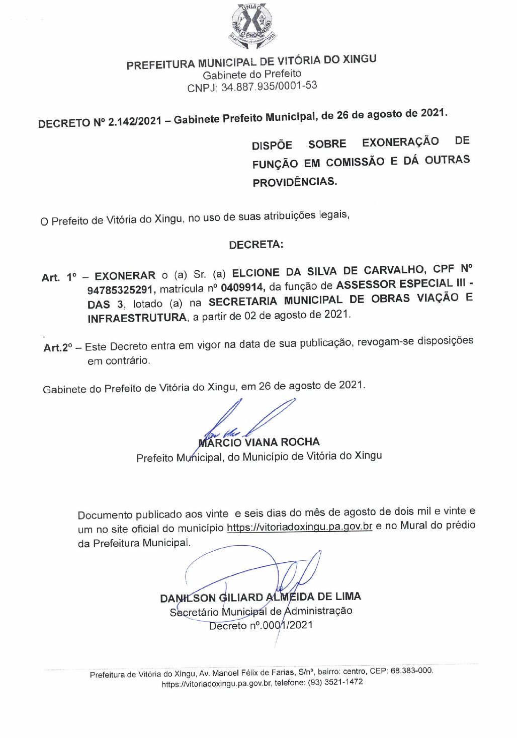 DECRETO Nº2.142-2021 – ELCIONE DA SILVA DE CARVALHO
