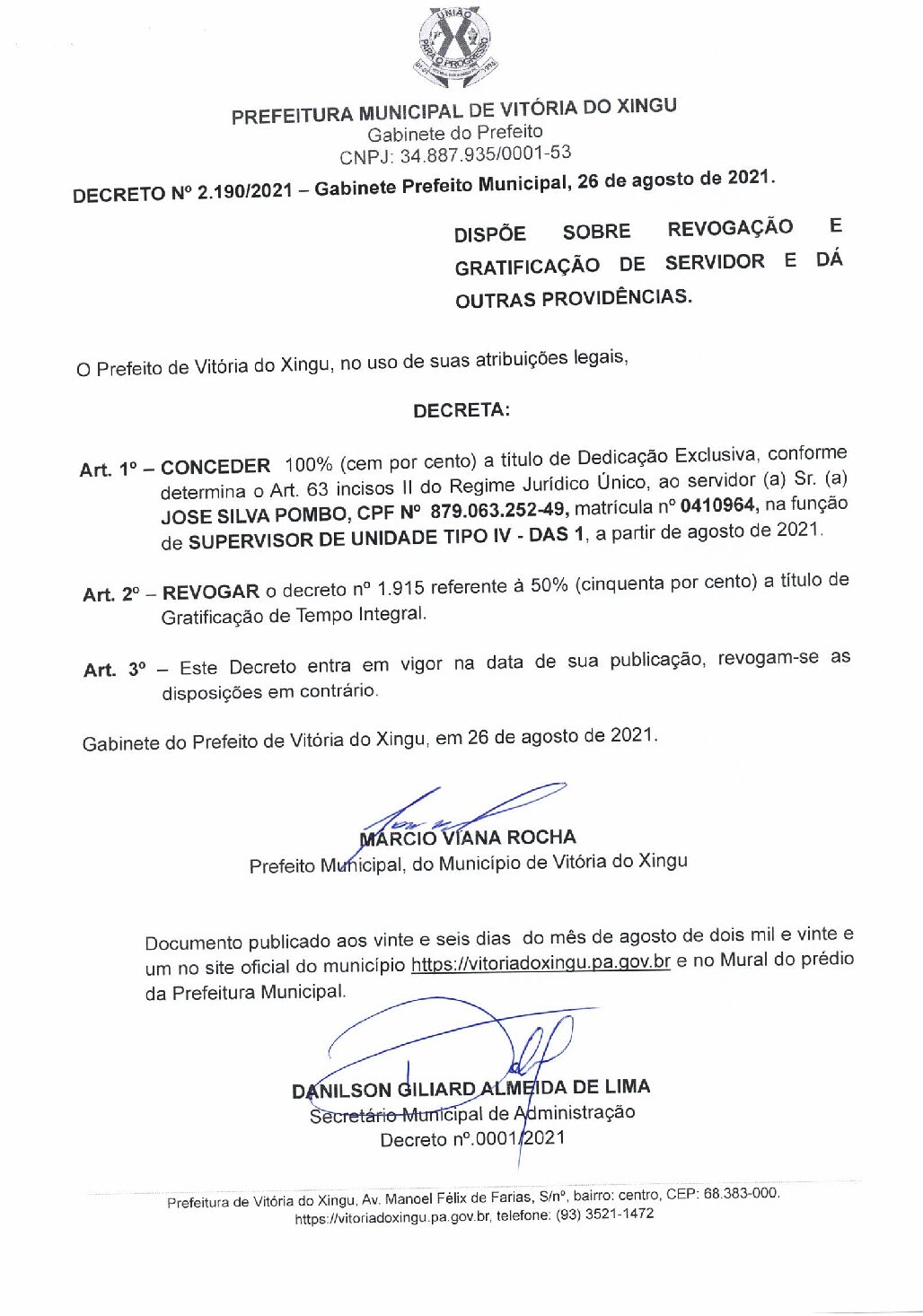 DECRETO Nº2.190-2021 – JOSE SILVA POMBO