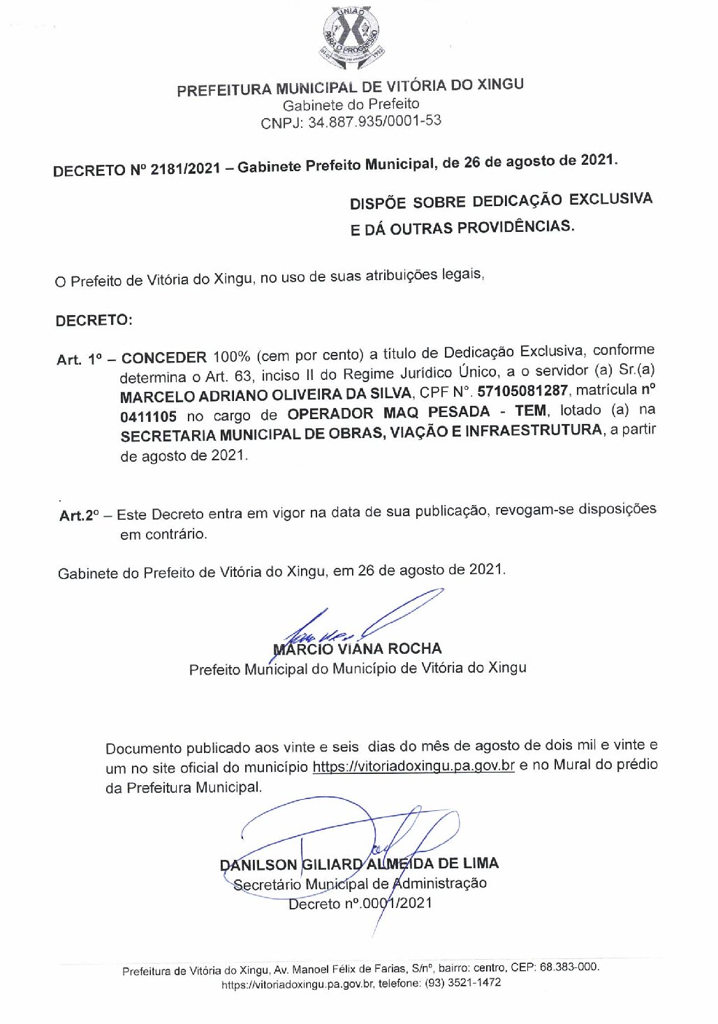 DECRETO Nº2181-2021 – MARCELO ADRIANO OLIVEIRA DA SILVA