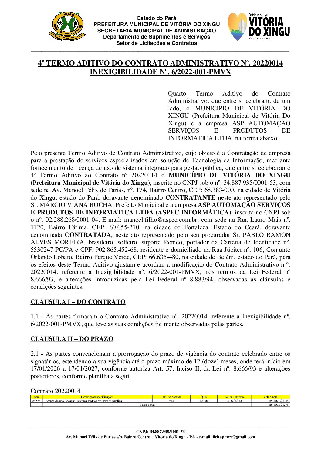 4º Termo Aditivo de Prazo – Contrato nº 20220014_ASS.ASS
