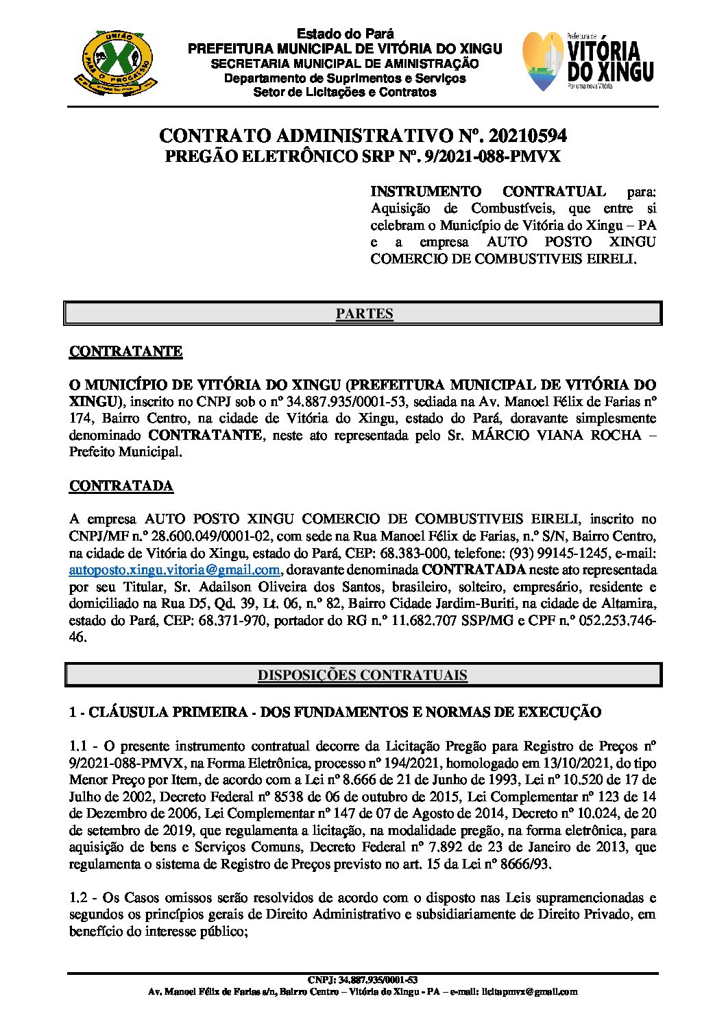 – Contrato nº 20210594 – PMVX – Assin. aasin.