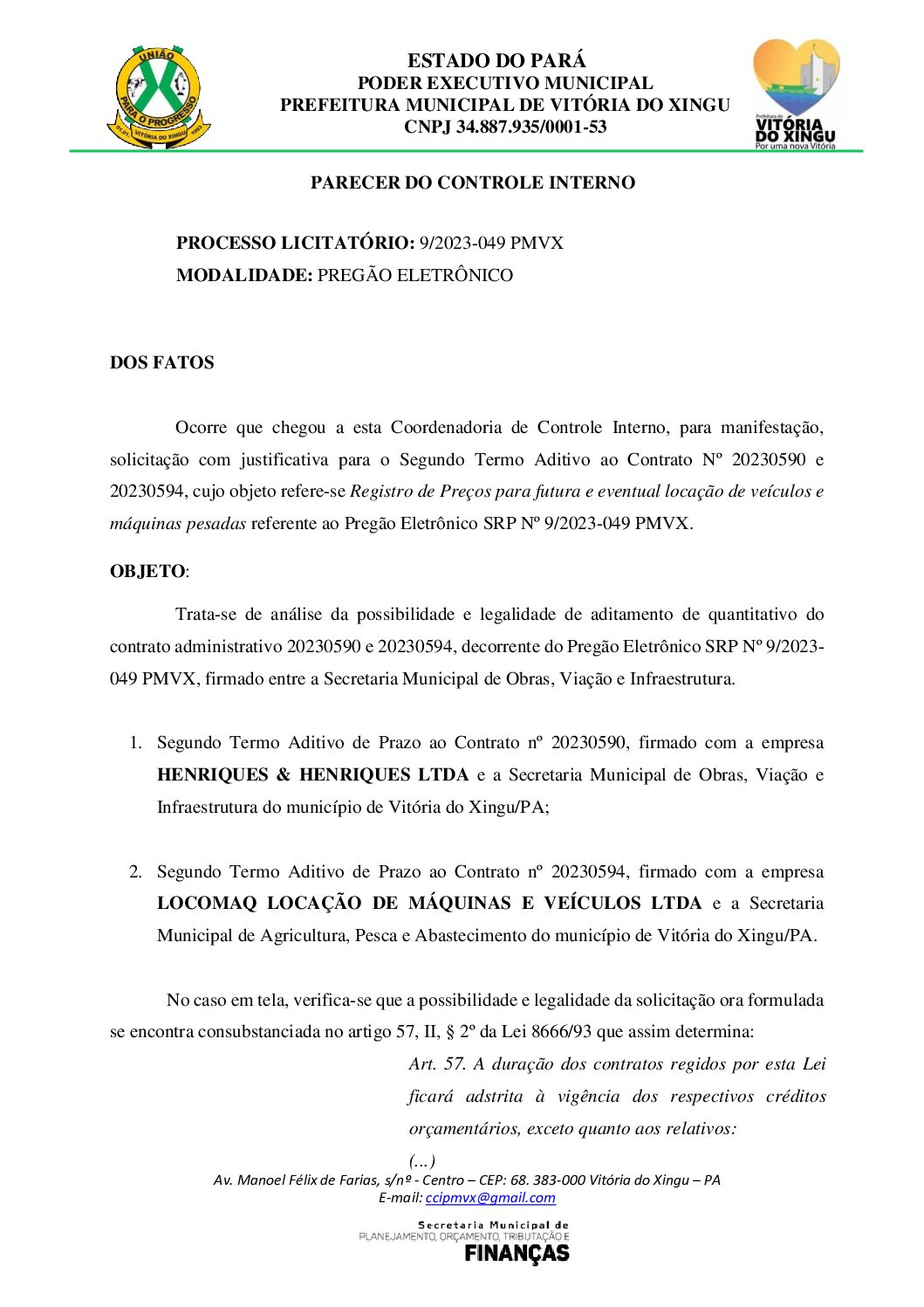 Parecer Pregão 9-2023-049 – locação de veículos e máquinas pesadas