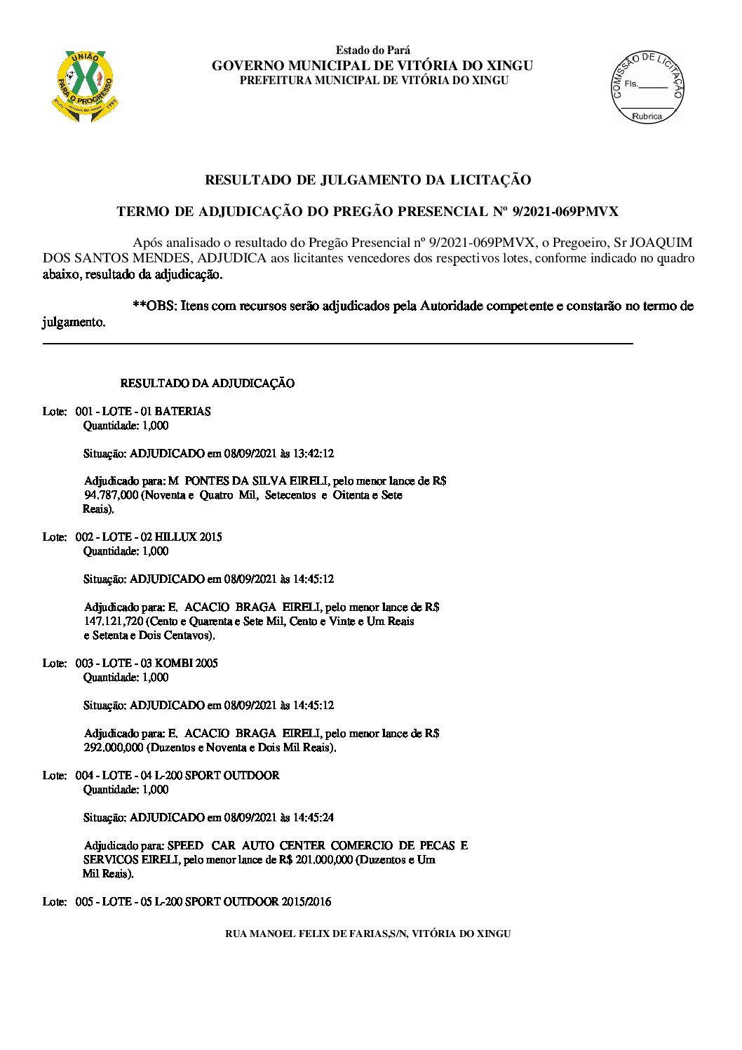 TERMO DE ADJUDICAÇÃO – ASSINADO