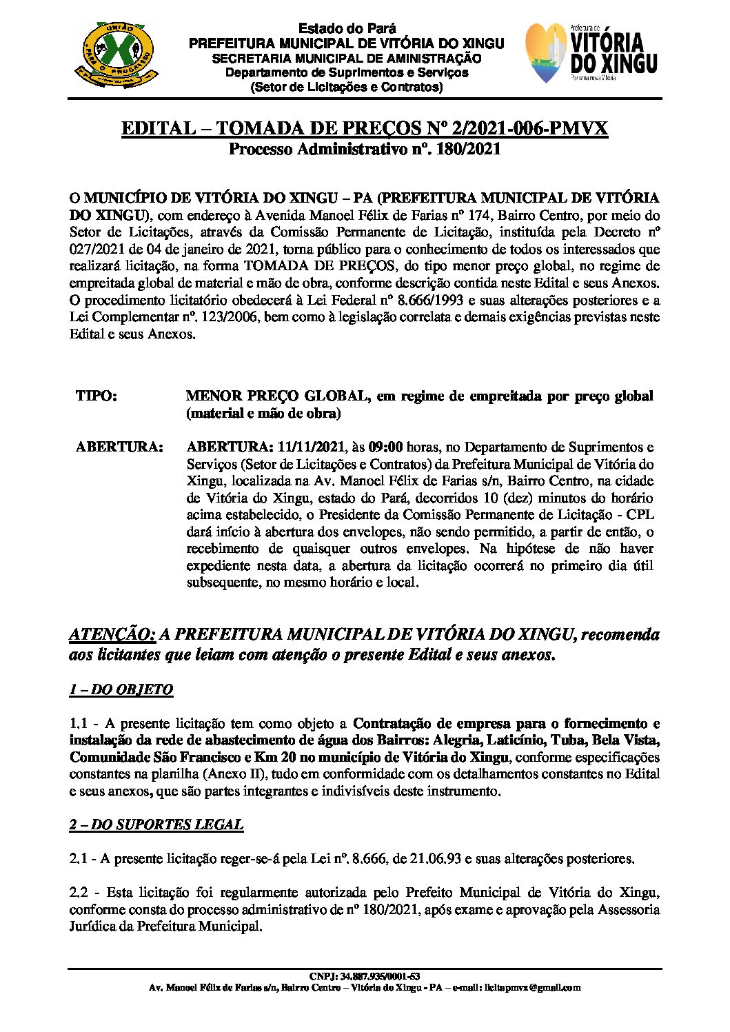 EDITAL – Tomada de Preços nº. 2-2021-006-PMVX – ASSINADO